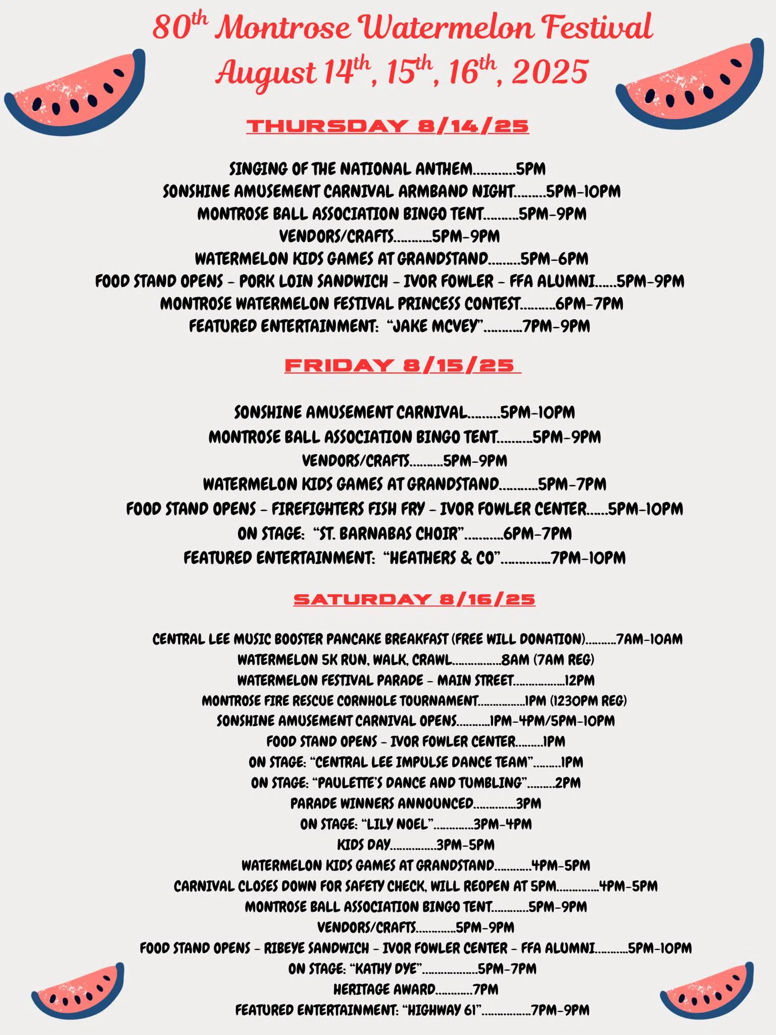 Join us for the 80th Annual Montrose Watermelon Festival August 14th, 15th and 16th!